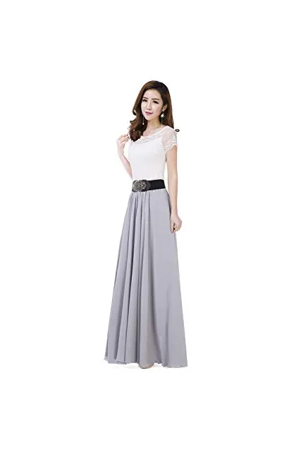 Sinreefsy Summer Chiffon High Waist Pleated Big Hem Floor/Ankle Length Beach Maxi Skirt for Women Wedding Party