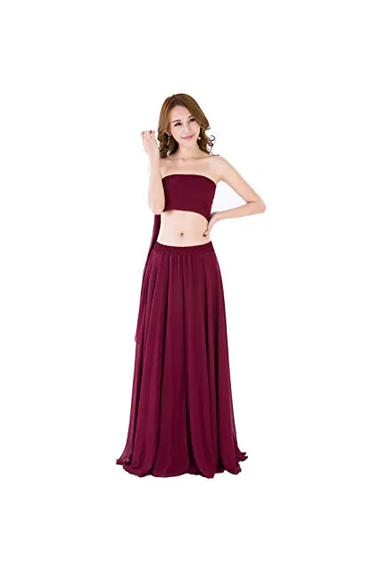 Sinreefsy Summer Chiffon High Waist Pleated Big Hem Floor/Ankle Length Beach Maxi Skirt for Women Wedding Party