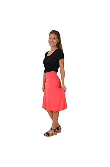 Stretch is Comfort Women's Knee Length Flowy Skirt | Adult Small (0-2) - Adult 3X (20-22)