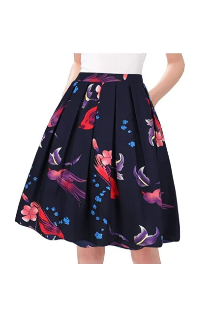 - Features: Pleated design, Concealed zipper at back,pockets,Vintage Style.