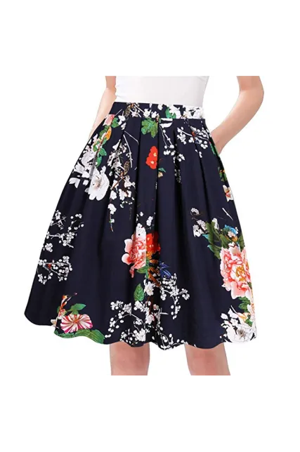- Features: Pleated design, Concealed zipper at back,pockets,Vintage Style.