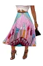 - Woman Elegant Summer Graffiti High Waist Floral Letter Print Rainbow Accordion Loose Casual Flowy Long A Line Party Skirt