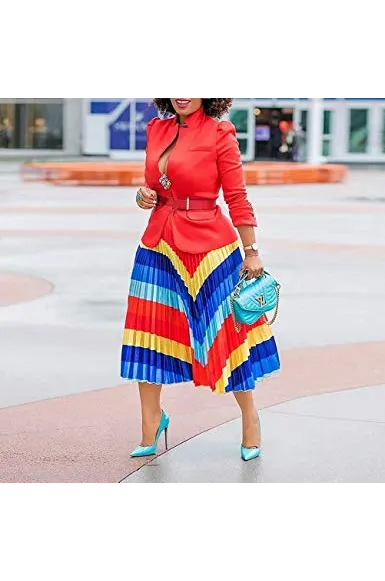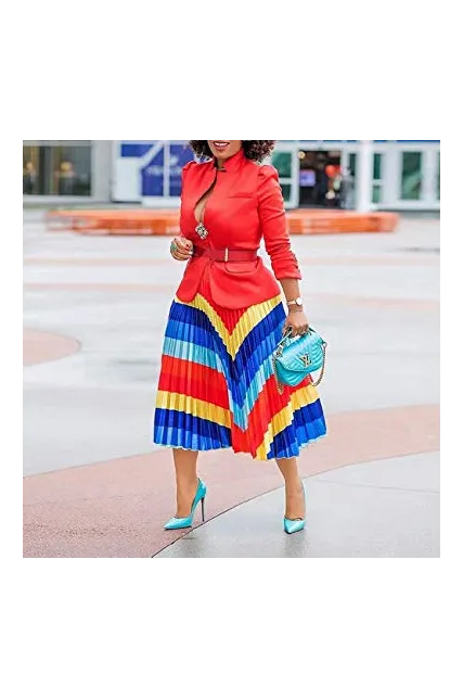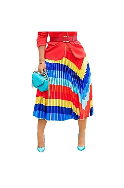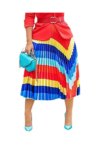 - Woman Elegant Summer Graffiti High Waist Floral Letter Print Rainbow Accordion Loose Casual Flowy Long A Line Party Skirt