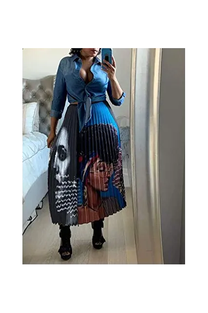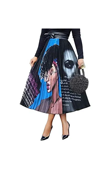 - Features:Elastic Waist,Graffiti Cartoon Letter Tie Dye Floral Printed,Midi Pleated Skirts/Long Maxi Skirts,Party Club Skirt