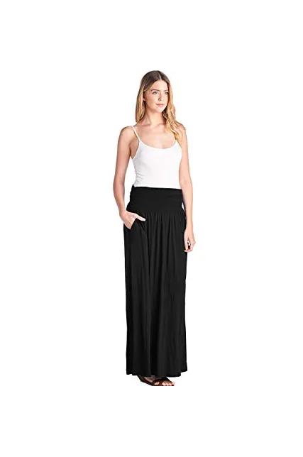 - Material: Rayon 95% + Spandex 5%, Extremely Soft Fabric. High Quality Heavy Fabric Minimizing See Through. Comfy Style. Easy Flowing Material. Skirts with Pockets. High Waisted, Side Shirring Detail on the side.