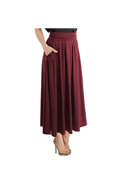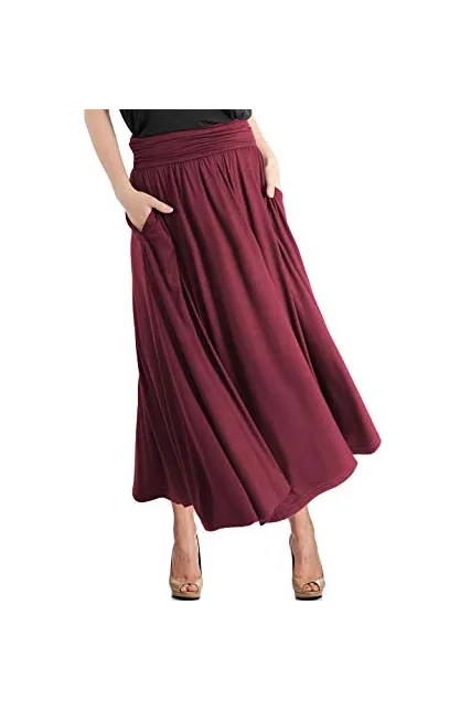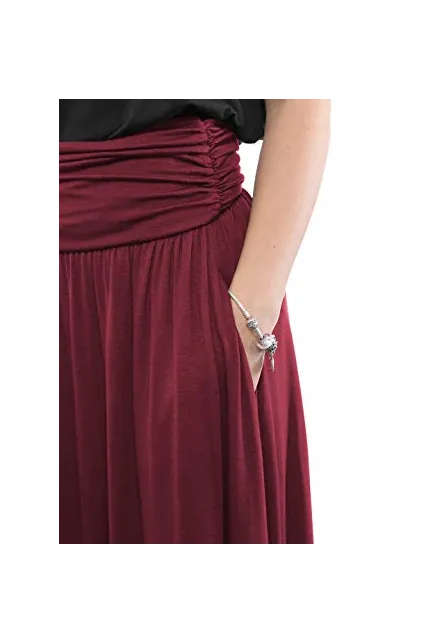 - Material: Rayon 95% + Spandex 5%, Extremely Soft Fabric. High Quality Heavy Fabric Minimizing See Through. Comfy Style. Easy Flowing Material. Skirts with Pockets. High Waisted, Side Shirring Detail on the side.