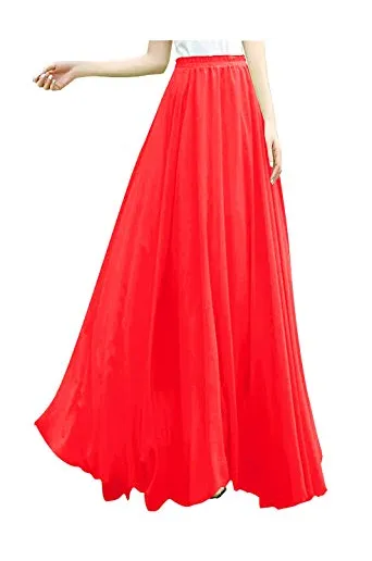 - Women Maxi Skirt - Made of 3 Layers of different Length Sheer Chiffon. White Color is Made of 1 Layer Chiffon and 1 Layer of thicker Lining to prevent see through