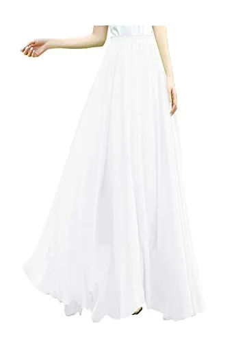 - Women Maxi Skirt - Made of 3 Layers of different Length Sheer Chiffon. White Color is Made of 1 Layer Chiffon and 1 Layer of thicker Lining to prevent see through