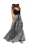 Womens Maxi Skirt Leopard Print Chiffon Beach Pleated High Waisted A-Line Long Skirts