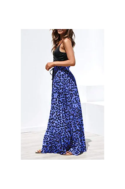 - Features: High rise, elastic waist, with drawstring, pleated, flowy and flared, a line, floor length long skirt, leopard print maxi skirt.