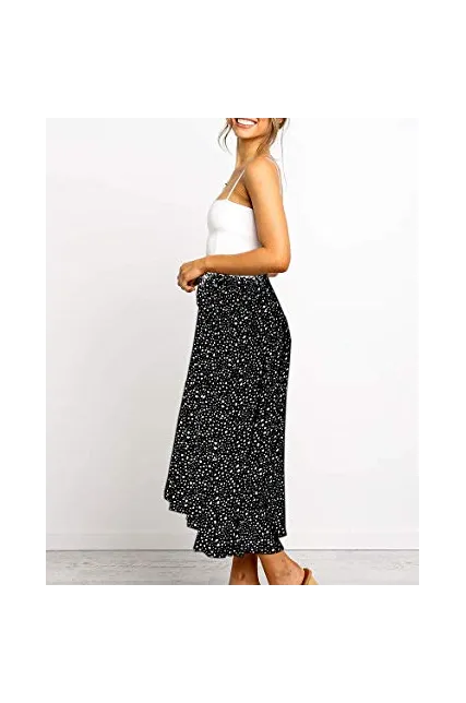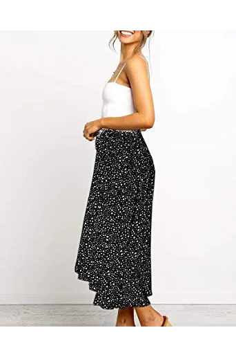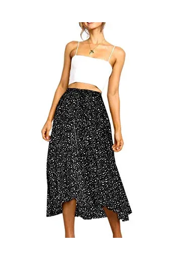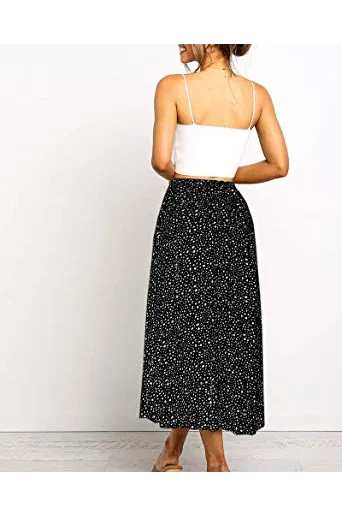 - Features: High waist, elastic waist, with drawstring, pleated, flowy and flared, a line, polka dot print midi skirt.