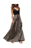 Womens Maxi Skirt Leopard Print Chiffon Beach Pleated High Waisted A-Line Long Skirts