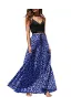 - Features: High rise, elastic waist, with drawstring, pleated, flowy and flared, a line, floor length long skirt, leopard print maxi skirt.