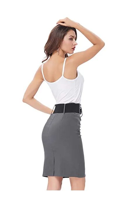 - Item Feature: High waist pencil style; Center back split design; Matched with removable PU leather belt