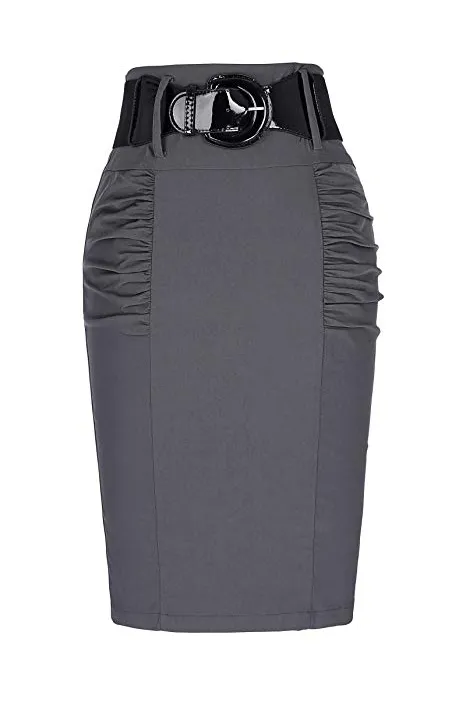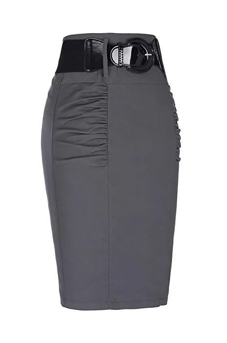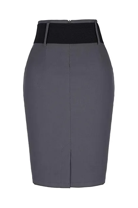 Women's Stretchy Pencil Skirt Side Pleated Business Skirts with Belt KK271(28 Color)