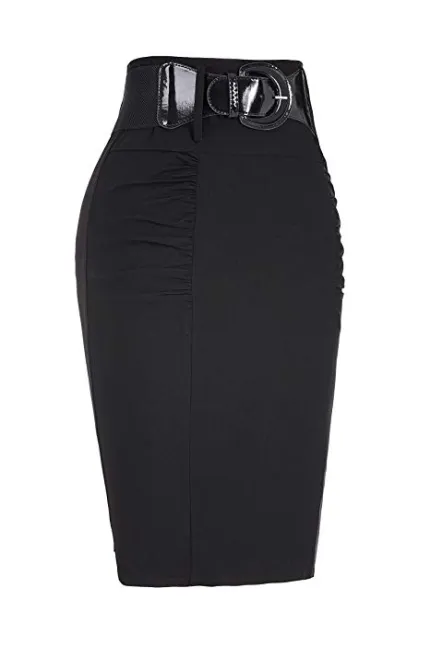 - Item Feature: High waist pencil style; Center back split design; Matched with removable PU leather belt