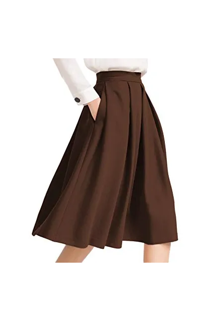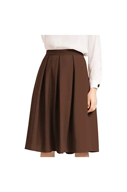 - Women's knee length skirt. Twill fabric for comfortable fit,pleated skater midi skirt.