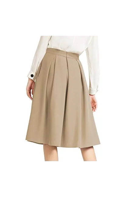 - Women's knee length skirt. Twill fabric for comfortable fit,pleated skater midi skirt.