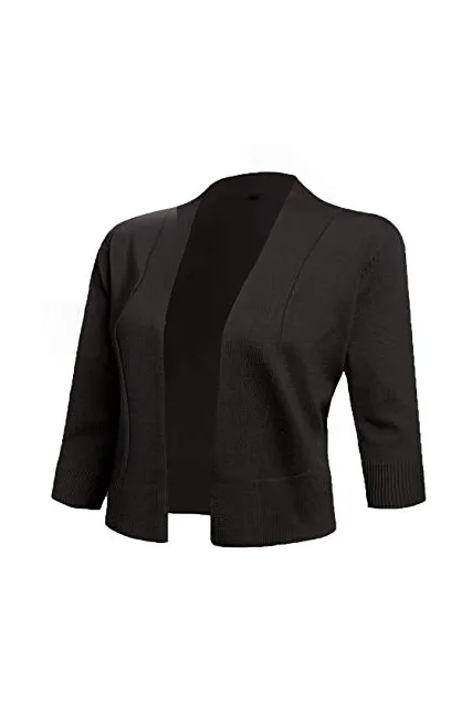AAMILIFE Women's 3/4 Sleeve Cropped Cardigans Sweaters Jackets Open Front Short Shrugs for Dresses