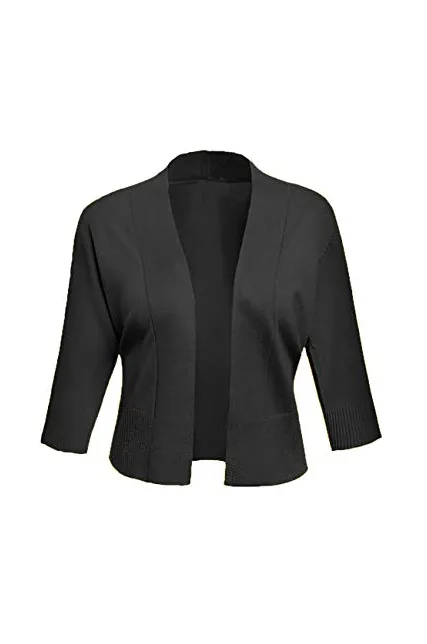 AAMILIFE Women's 3/4 Sleeve Cropped Cardigans Sweaters Jackets Open Front Short Shrugs for Dresses