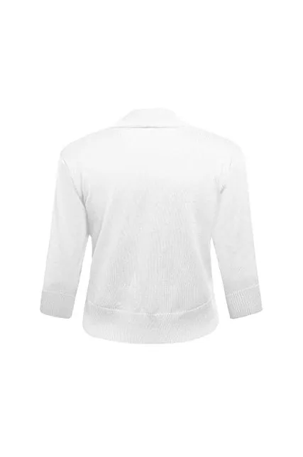 AAMILIFE Women's 3/4 Sleeve Cropped Cardigans Sweaters Jackets Open Front Short Shrugs for Dresses