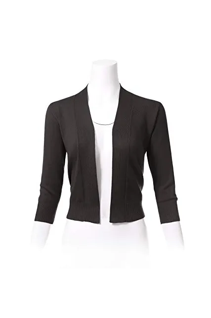 - Classic 3/4 Sleeve Open Front Cropped Bolero Cardigan