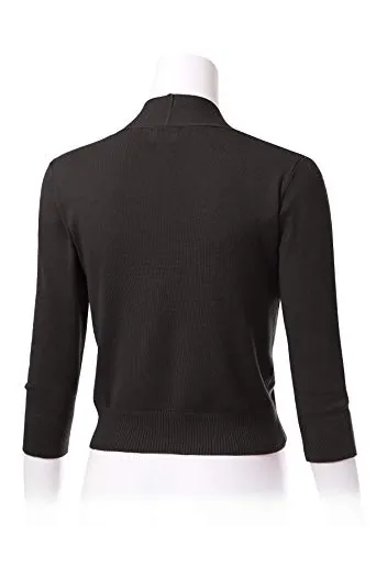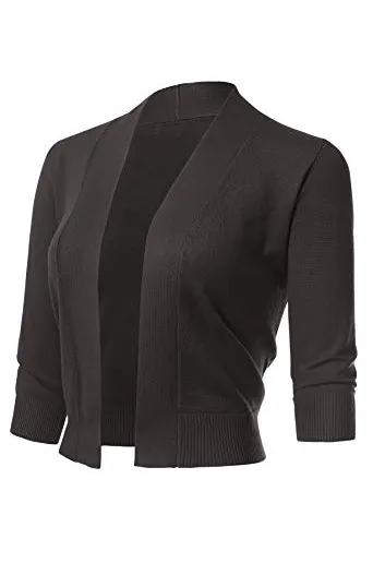 - Classic 3/4 Sleeve Open Front Cropped Bolero Cardigan