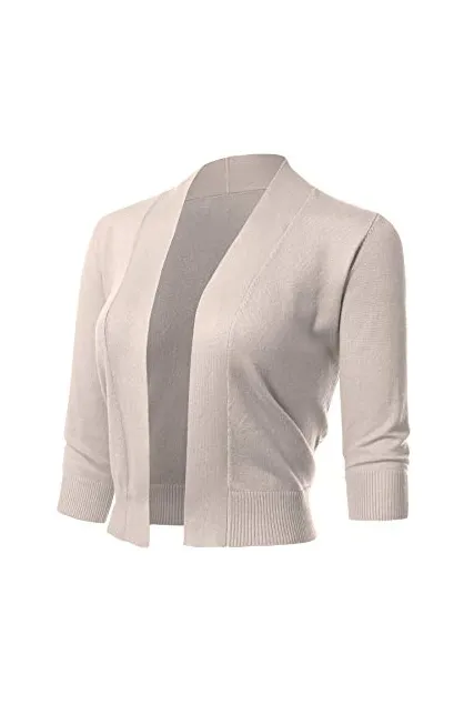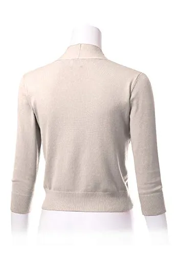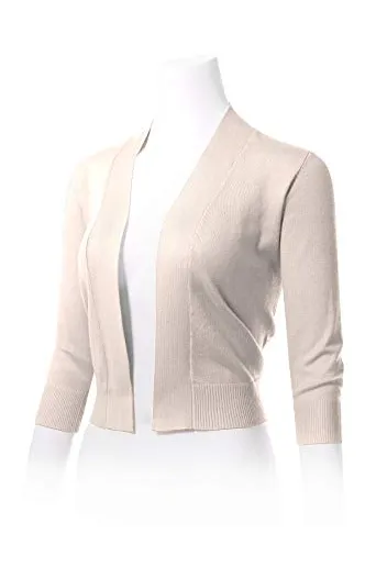 - Classic 3/4 Sleeve Open Front Cropped Bolero Cardigan