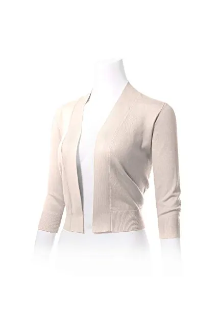 - Classic 3/4 Sleeve Open Front Cropped Bolero Cardigan