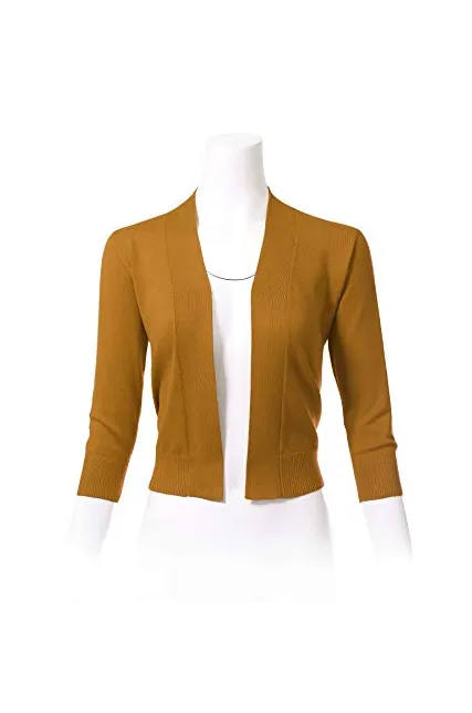 - Classic 3/4 Sleeve Open Front Cropped Bolero Cardigan
