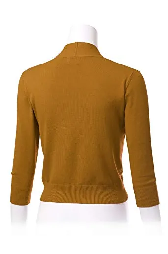 - Classic 3/4 Sleeve Open Front Cropped Bolero Cardigan