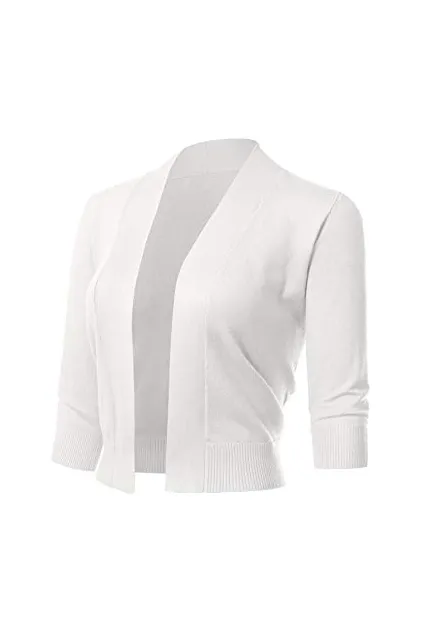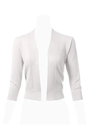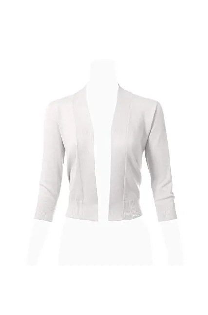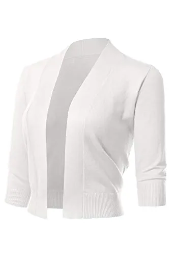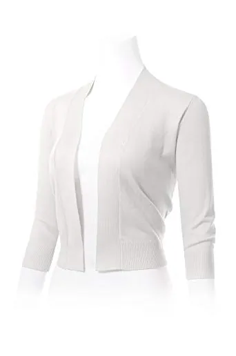- Classic 3/4 Sleeve Open Front Cropped Bolero Cardigan