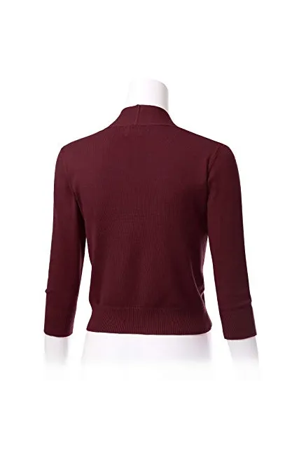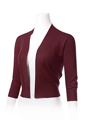 - Classic 3/4 Sleeve Open Front Cropped Bolero Cardigan