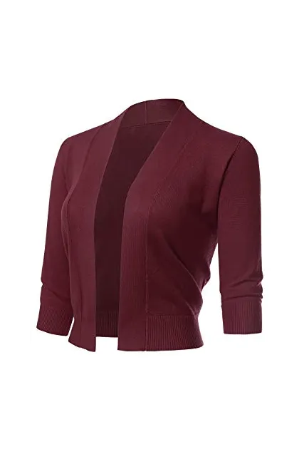- Classic 3/4 Sleeve Open Front Cropped Bolero Cardigan