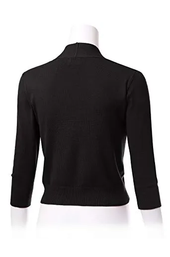 - Classic 3/4 Sleeve Open Front Cropped Bolero Cardigan
