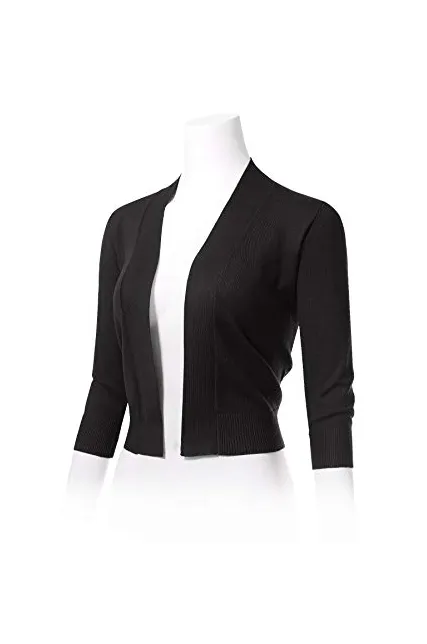 - Classic 3/4 Sleeve Open Front Cropped Bolero Cardigan