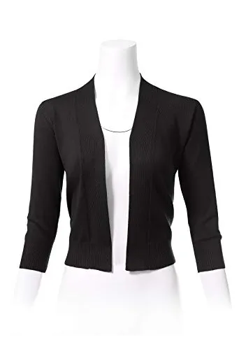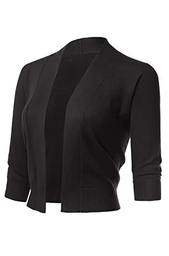 - Classic 3/4 Sleeve Open Front Cropped Bolero Cardigan