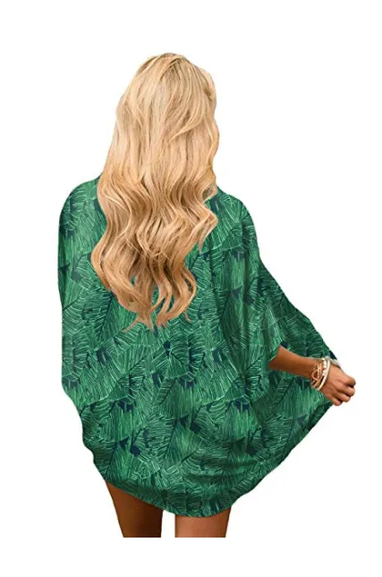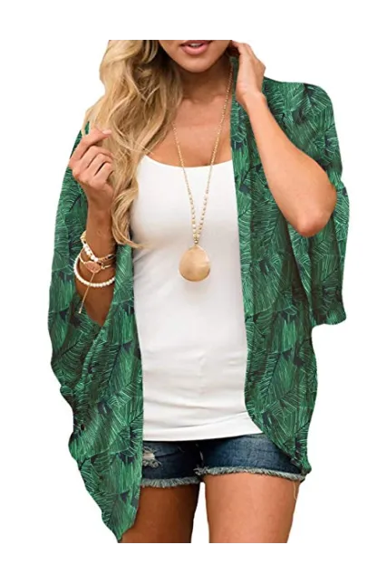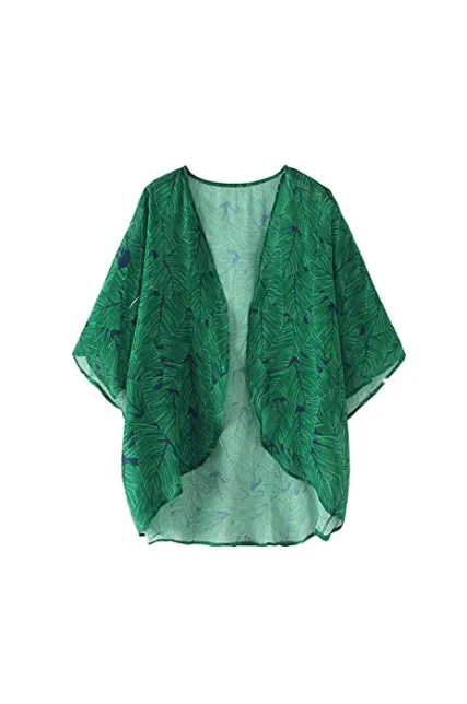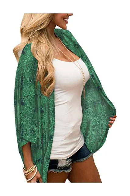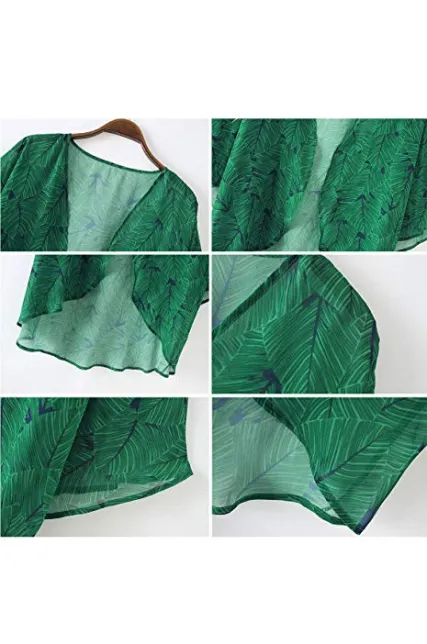 - [FEMININE DESIGN]: This boho style kimono wrap features 3/4 retro-chic bell sleeve,vibrant leafy print, casual loose style. A perfect mix of chic and casual-bohemian on-trend style, easily stand out