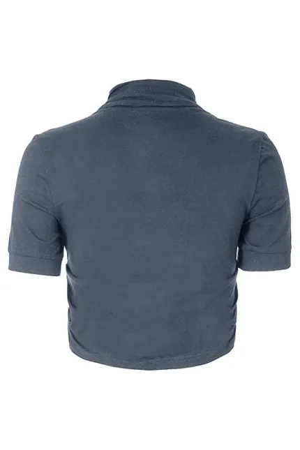 - Features: Open Front, Short Sleeves, Cropped Design, Side Pleated