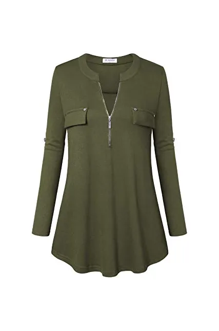 - The sleeves can be rolled up with the buttons as 3/4 sleeve top or it can be worn as a long sleeve top, and it fits loosely with the zipper giving it a feminine touch