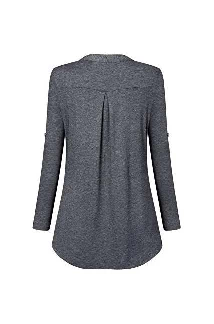 - The sleeves can be rolled up with the buttons as 3/4 sleeve top or it can be worn as a long sleeve top, and it fits loosely with the zipper giving it a feminine touch