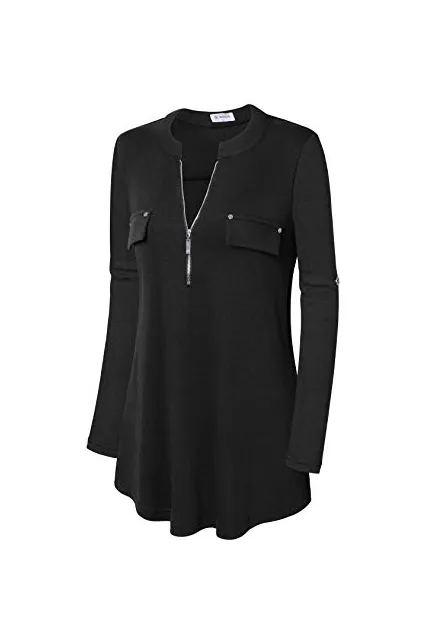 - The sleeves can be rolled up with the buttons as 3/4 sleeve top or it can be worn as a long sleeve top, and it fits loosely with the zipper giving it a feminine touch