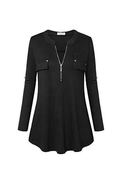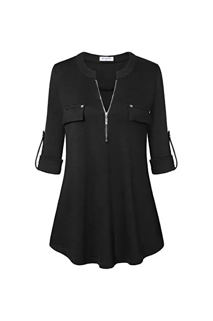 - The sleeves can be rolled up with the buttons as 3/4 sleeve top or it can be worn as a long sleeve top, and it fits loosely with the zipper giving it a feminine touch