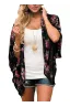 - Fashion kimono style, flower print, bat sleeve, open placket, drop shoulder, relaxed fit, soft and lightweight material
