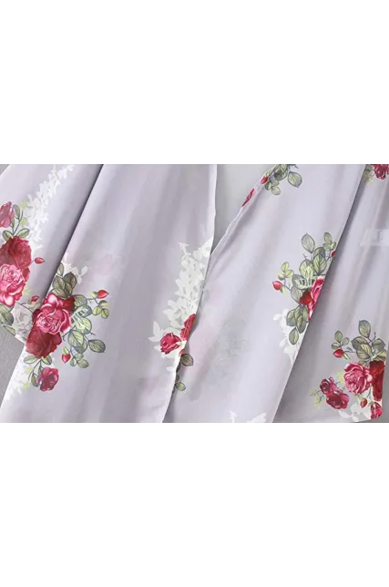 - Fashion kimono style, flower print, bat sleeve, open placket, drop shoulder, relaxed fit, soft and lightweight material