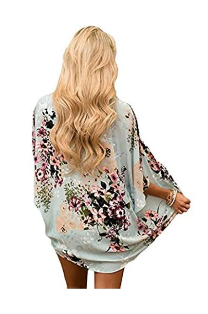 Camisunny Women Chiffon Printed Cardigan Kimono Robe Tops Beach Bikini Cover up Blouse