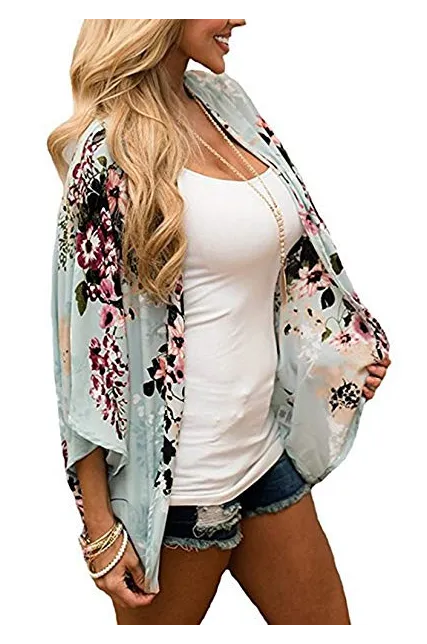 - Fashion kimono style, flower print, bat sleeve, open placket, drop shoulder, relaxed fit, soft and lightweight material