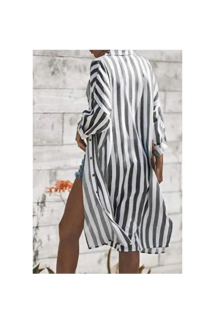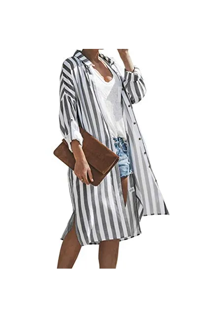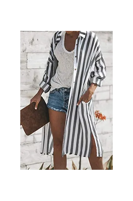 - Dokotoo Womens Stripe Pocket Button Down Long Sleeve Open Front Slit Long Cardigans Outerwear