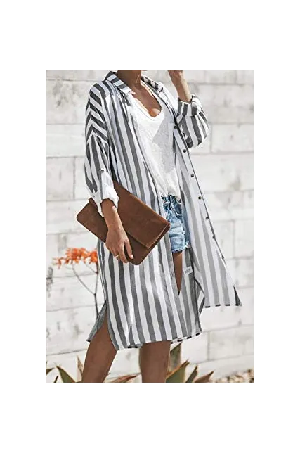 - Dokotoo Womens Stripe Pocket Button Down Long Sleeve Open Front Slit Long Cardigans Outerwear