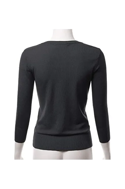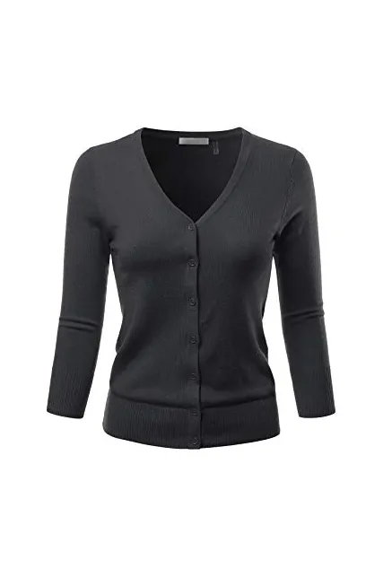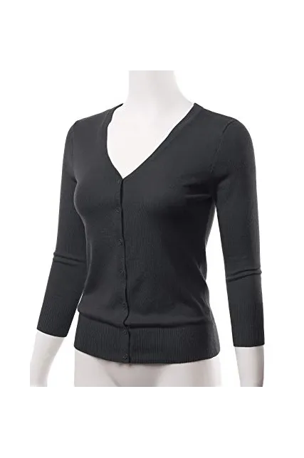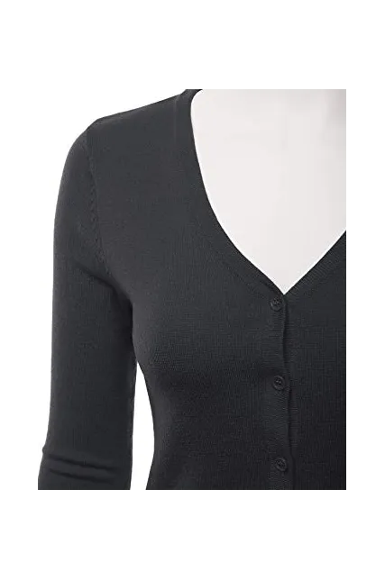 - Casual Basic Slim Fit Three Quarter Sleeve Button Down V-Neck Stretch Knit Cardigan Sweater